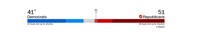 此外,据媒体预测,共和党人也赢下了参议院的控制权;同时其在众议院的多数席位亦将保持。